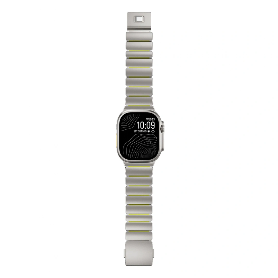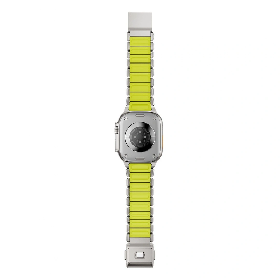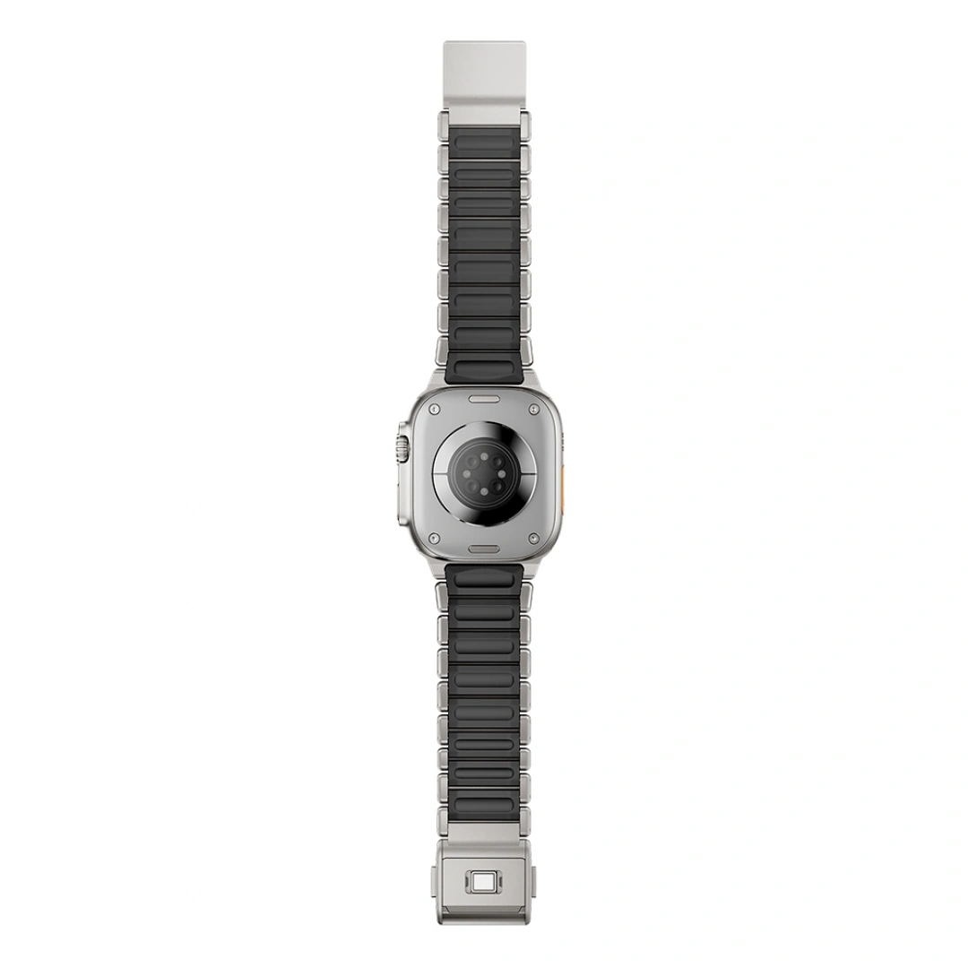 Saf titanyumdan üretilen bu kordon, paslanmaz çeliğe göre çok daha hafif ve sağlam bir yapıya sahiptir. Yüksek gerilme direncine sahip silikon iç yüzeyi sayesinde uzun süreli kullanımlarda bile maksimum konfor sunar. Pürüzsüz dokusu ve kir tutmayan yüzeyiyle her zaman yeni görünümünü korur.