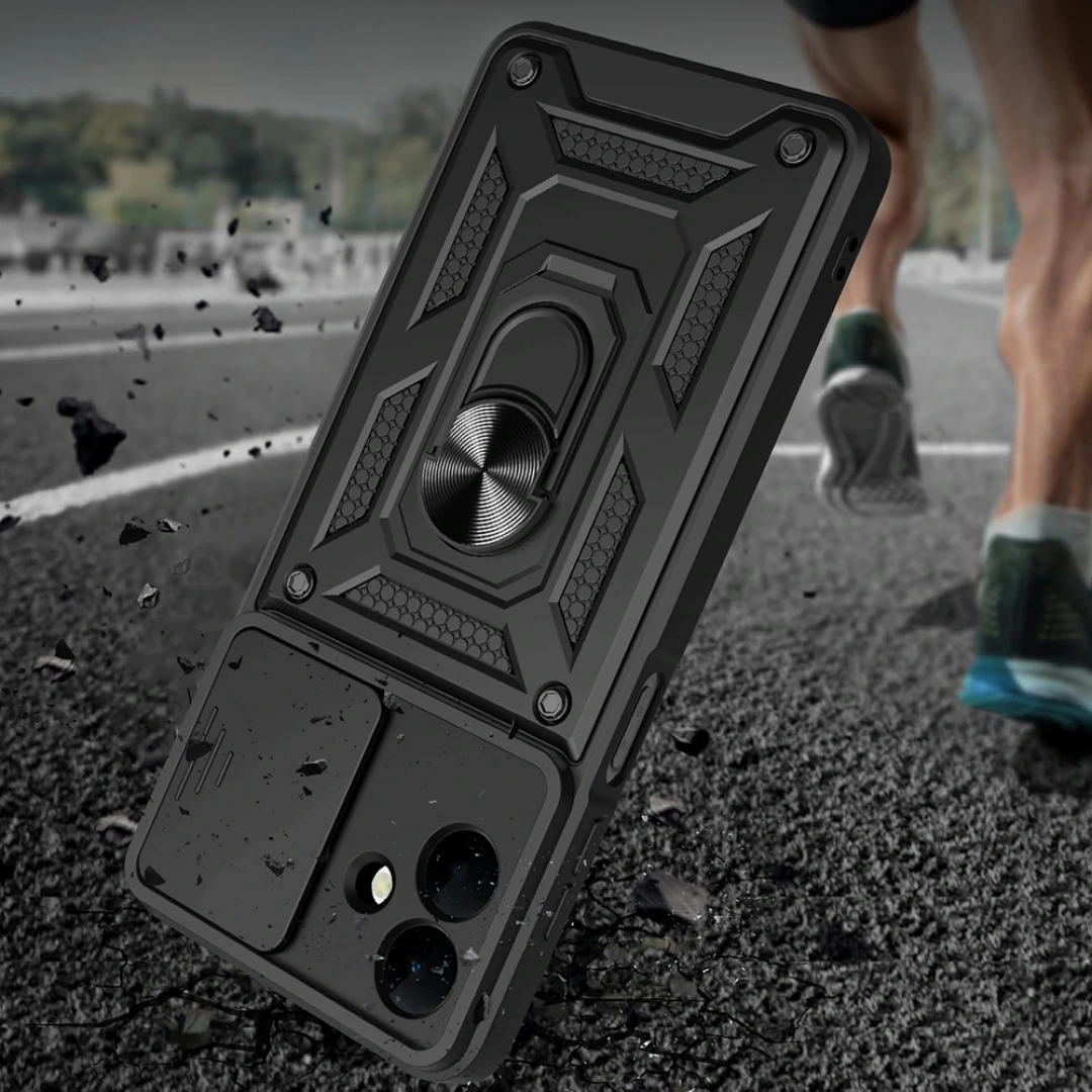 Redclick Sürgülü Vega Kapak, TPU gövdesi ve polikarbon sırtı ile çift katmanlı yapısı sayesinde telefonunuzu darbelerden maksimum düzeyde korur. Bu kapak, günlük kullanımda karşılaşabileceğiniz sert çarpmalara karşı telefonunuzu güvende tutar. Şık tasarımıyla ilgi çekici ve fonksiyonel yapısıyla çok yönlü kullanım imkanı sunar.