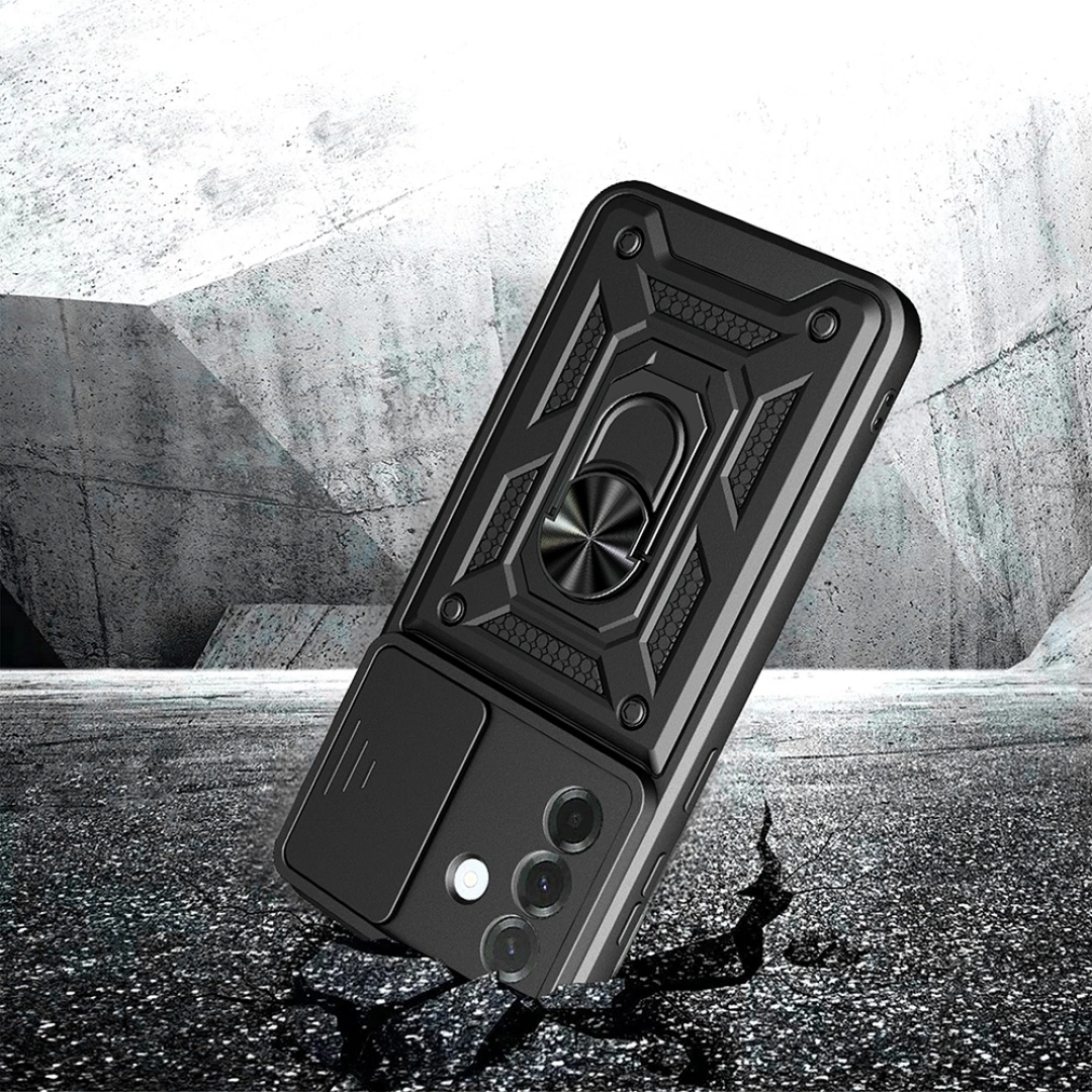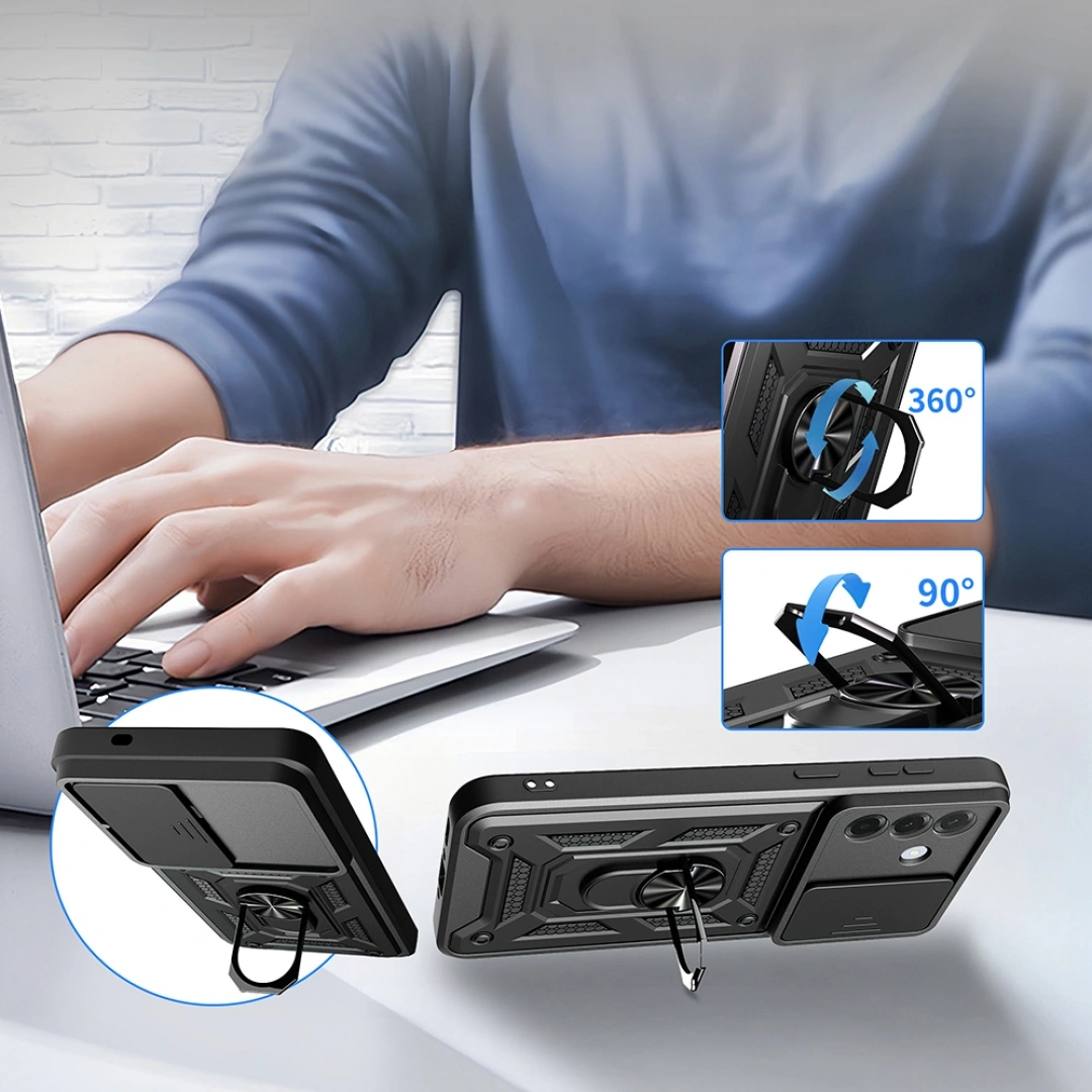 Redclick Sürgülü Vega Kapak, TPU gövdesi ve polikarbon sırtı ile çift katmanlı yapısı sayesinde telefonunuzu darbelerden maksimum düzeyde korur. Bu kapak, günlük kullanımda karşılaşabileceğiniz sert çarpmalara karşı telefonunuzu güvende tutar. Şık tasarımıyla ilgi çekici ve fonksiyonel yapısıyla çok yönlü kullanım imkanı sunar.