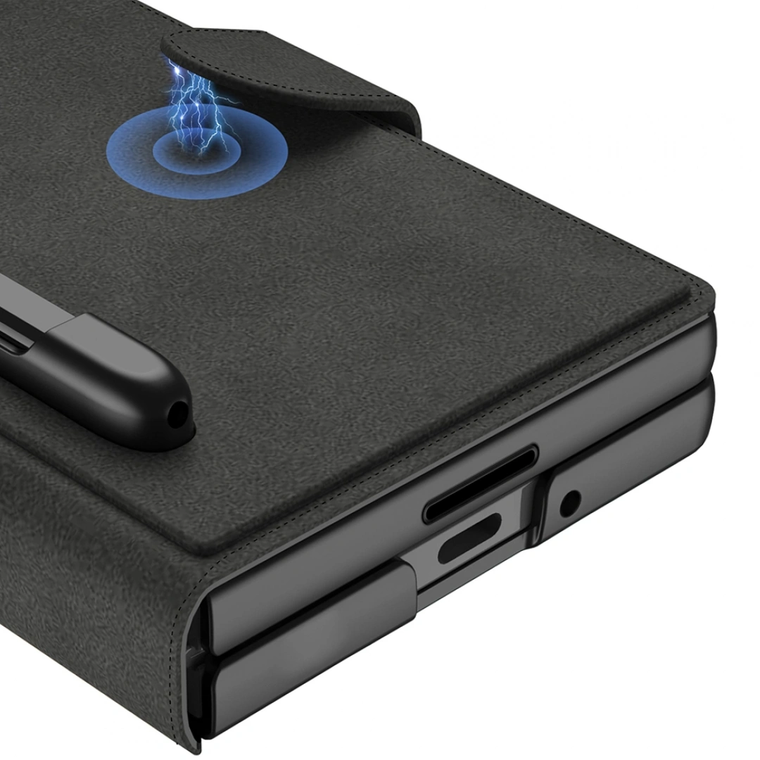 Kadife tasarımıyla mükemmel bir şıklık sunan bu kapak, cihazınıza tam uyum sağlar. Kapağın kalemlik bölümü, cırt cırtlı bantlı bölge sayesinde kolayca takılıp çıkartılabilir. Bu sayede not almak veya çizim yapmak istediğinizde kaleminizi her zaman yanınızda bulundurabilirsiniz. Kapak çıkarılmadan tüm slotlara erişim imkanı sunar, böylece telefonunuzu pratik bir şekilde kullanabilirsiniz. Çıtçıt düğmesiyle kapağı kolayca kapatabilir ve cihazınızı her an güvenle taşıyabilirsiniz.