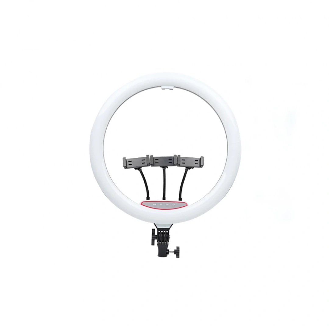 Redclick LJJ18 RGB Ring Light, 45 cm genişliğindeki etkileyici boyutuyla cildinizdeki tüm detayları kusursuz bir biçimde ortaya çıkarır. Gelişmiş LED teknolojisi, yumuşak ama güçlü bir ışık sağlayarak makyaj, vlog ve canlı yayınlarda profesyonel kalitede aydınlatma sunar. Üç telefon tutucu aparatı sayesinde aynı anda birden fazla cihazla çekim yapmak mümkün hâle gelir, böylece yayınlarınızda çok açılı çekimlerin keyfini yaşayabilirsiniz.