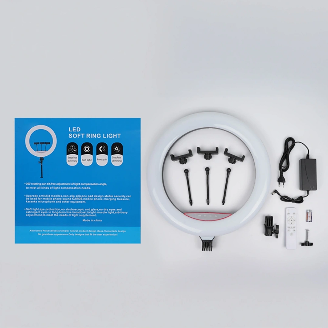 Paket İçeriği: Ring Light, adaptör, uzaktan kumanda, 3 telefon tutucu, tripod bağlantı aparatı